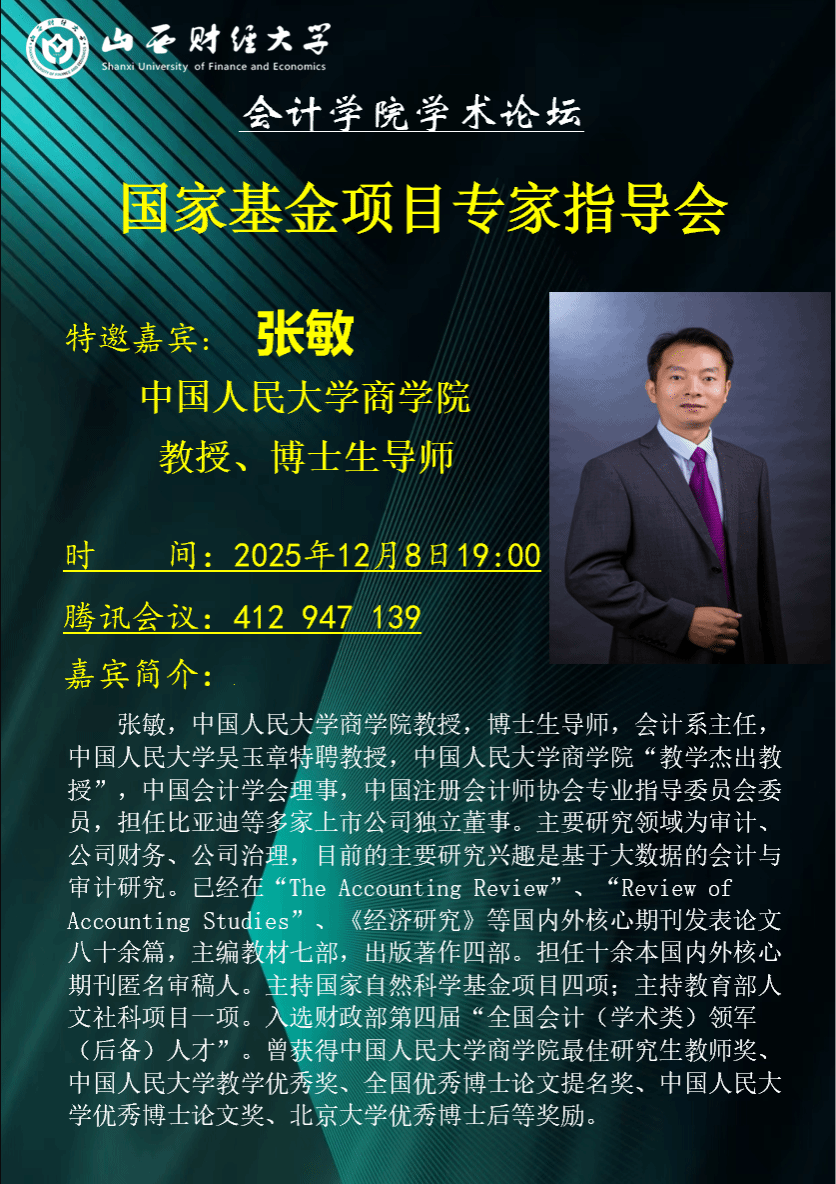 学术论坛第207期如期举行。本期论坛特邀中国人民大学商学院张敏教授担任主讲嘉宾,为学院师生带来一场题为“国家项目申请体会”的学术报告,并进行国家级项目申报专题辅导。论坛由韩国无码