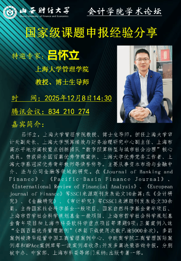 特别邀请上海大学吕怀立教授担任主讲嘉宾,举办国家级课题申报经验交流分享会。