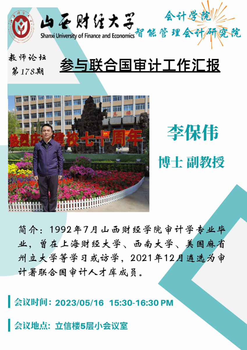 与智能管理会计研究院举行了第178次教师学术论坛。李保伟老师作主题报告《参与联合国审计工作汇报》。
