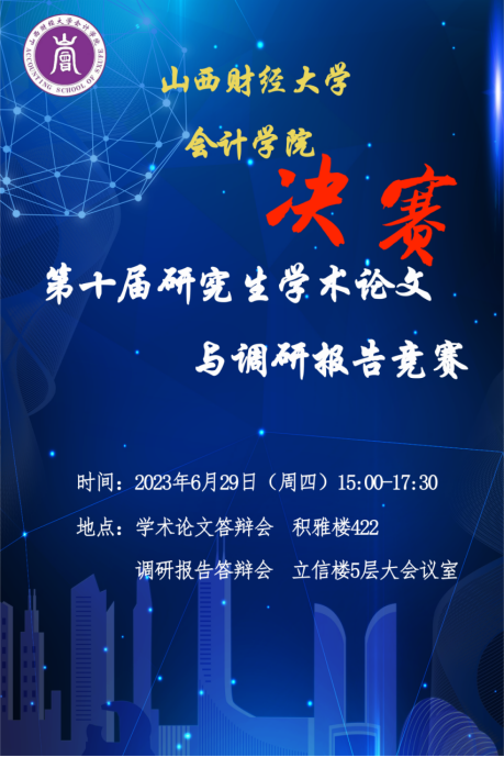 举办了第十届研究生学术论文和调研报告大赛。大赛共收到参赛作品100份,通过查重后的科研成果共74份,其中包括学术论文42份,调研报告32份。本次竞赛分为两个阶段:第一阶段(初赛)由外部专家匿名评审,主要邀请中国人民大学、中央财经大学、西南财经大学、天津财经大学、北京工商大学等知名大学的资深理论与实务专家分别评分,按照得分平均值进行排名;学术论文及调研报告各取前15名为本届大赛获奖科研成果。第二阶段决赛于6月29日15点-17点30分举行,在外部专家匿名评审的基础上,选取学术论文与调研报告各自排名前六位的选手进行现场答辩,决赛分为学术论文和调研报告两个分赛场,各由5名专家构成答辩委员会。最后,对初赛与决赛成绩赋予合理权重,得出最终成绩,并评选出一、二、三等奖获得者。