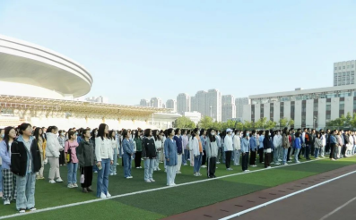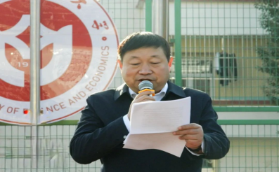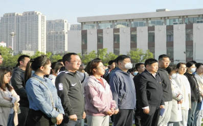 在坞城校区体育运动场举行升国旗仪式。学院全体班子成员、全体辅导员、学生代表参加活动,学院党委书记任海生讲主题教育党课,党委副书记赵骞主持仪式。